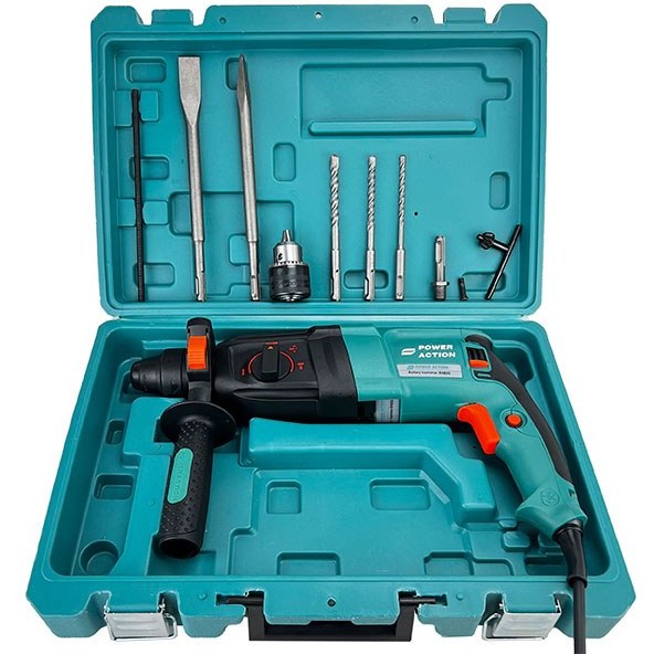 2 عدد مته تخریب،3 عدد مته سوراخکاری،عمق سنج،آچار، سه نظام 13 اضافه،رابط،کیف