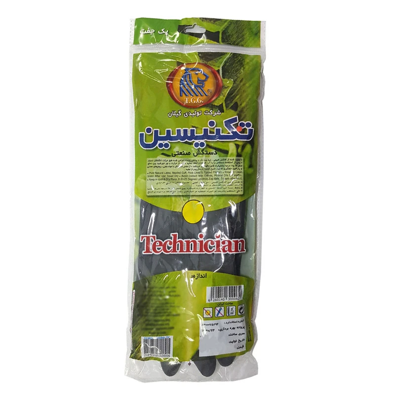 دستکش ایمنی یکی از ابزارهای مهم حفاظت فردی است که می تواند دست و ساعد شما را هنگام انجام کار با مواد خورنده و مضر، سطوح زبر و خطرناک و کار با رنگ حفاظت نماید. دستکش های ایمنی در انواع مختلفی تولید شده و هنگام انتخاب دستکش باید دقت شود که نوع دستکش انتخابی با نوع کار و سطح حفاظتی مورد نیاز همخوانی داشته باشد. دستکش صنعتی تکنسین گیلان کاربرد در مصارف عمومی، فعالیت های ساختمانی، بهداشتی، باغبانی، مکانیکی، حمل و نقل، صنایع نیمه سنگین قابل کاربرد بوده و از لاتکس طبیعی ساخته شده است. این محصول با لبه بید دار و پوشش پنبه، به نحوی طراحی شده که حرکت انگشتان دست در آن به سادگی میسر باشد. این محصول پس از استفاده باید با آب شسته و خشک شده و دور از حرارت و نور مستقیم خورشید و در دمای صفر تا 25 درجه سانتیگراد نگهداری شود. از تماس دستکش با مواد نفتی ، روغن های معدنی و پارافین باید جلوگیری شود.